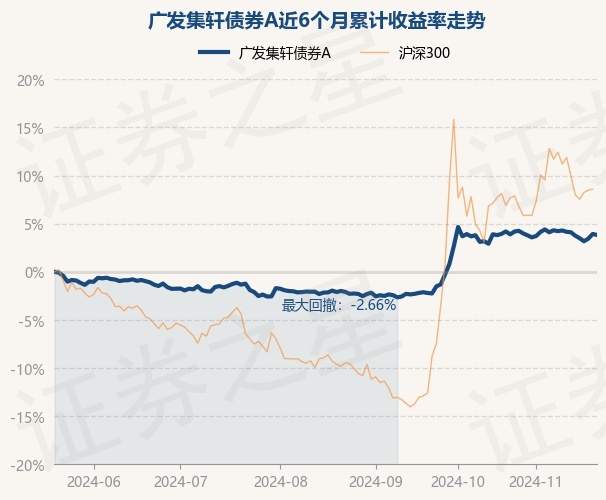 本站音问九游体育娱乐网,11月21日,广发集轩债券A最新单元净值为1.0552元,累计净值为1.0552元,较前一往未来下落0.09%。历史数据露出该基金近1个月高潮0.02%,近3个月高潮5.94%,近6个月高潮3.83%,近1年高潮6.25%。该基金近6个月的累计收益率走势如下图: